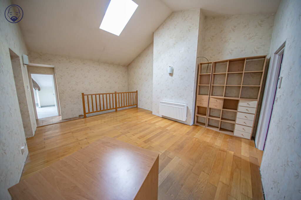 A l’étage, un grand palier avec espace bureau dessert trois chambres spacieuses, une salle de bain avec WC , ainsi qu’un grenier.