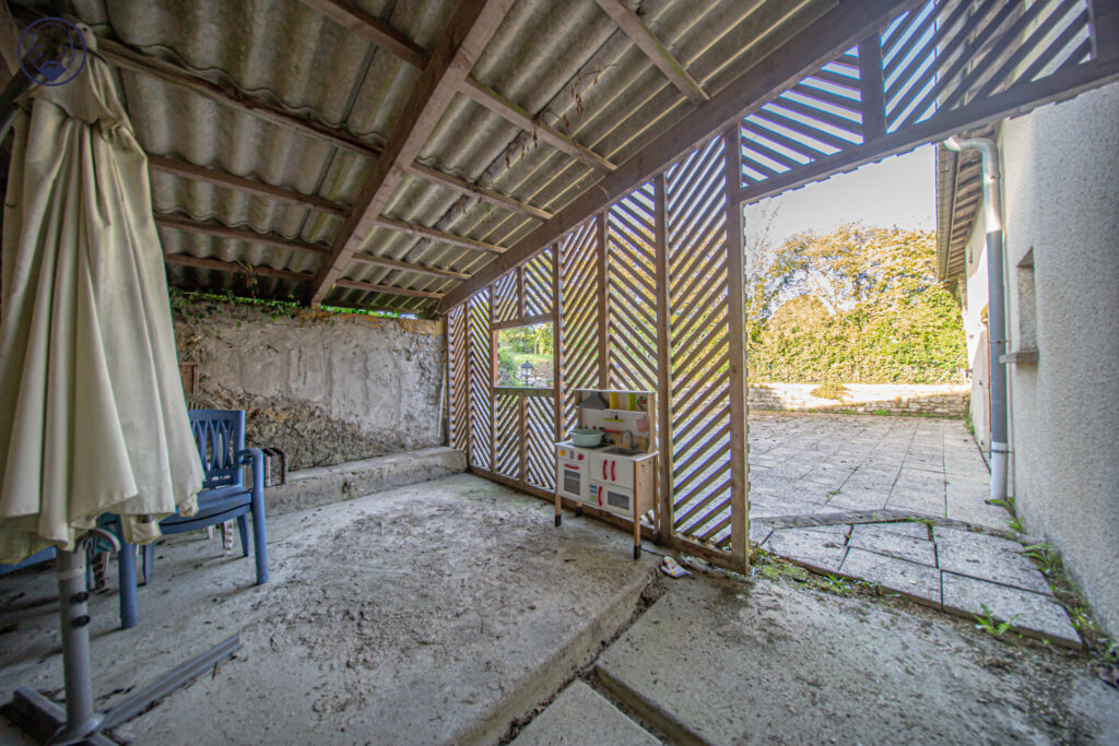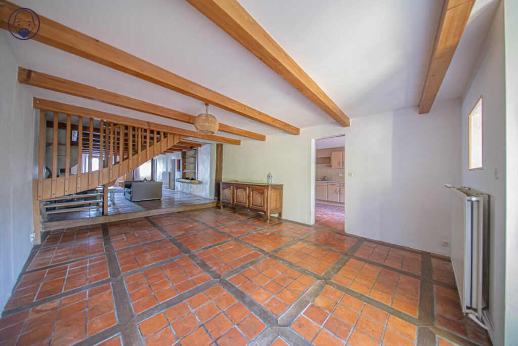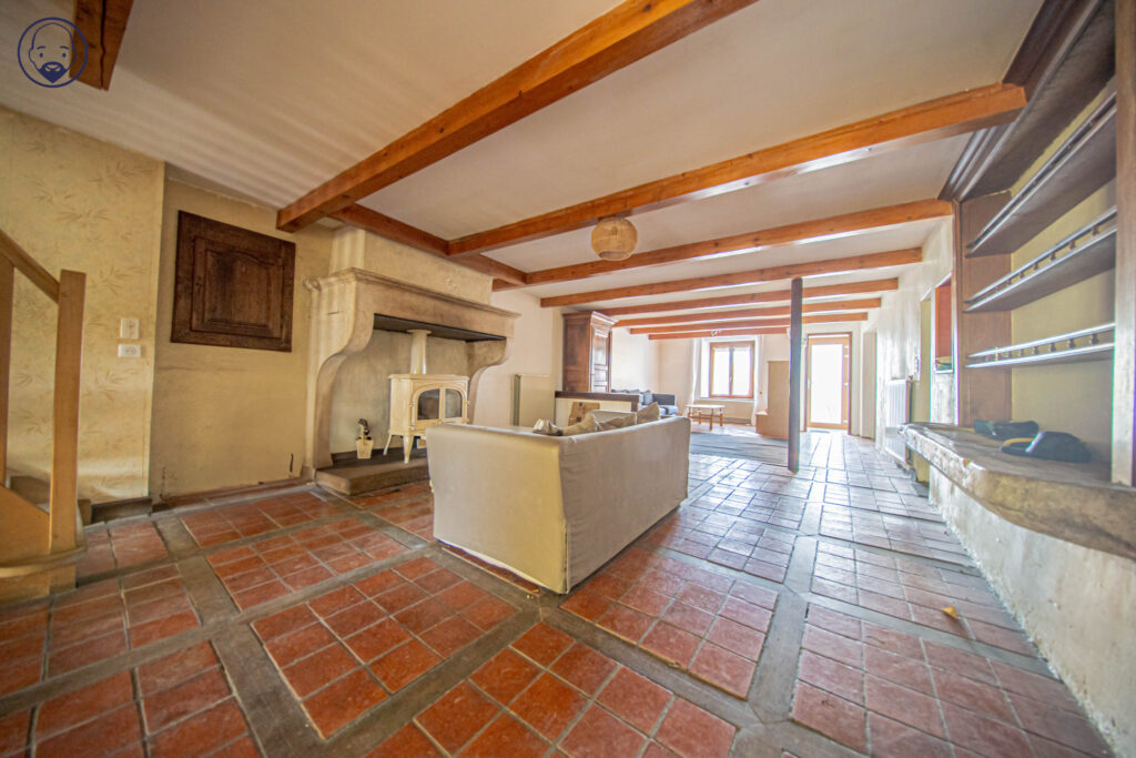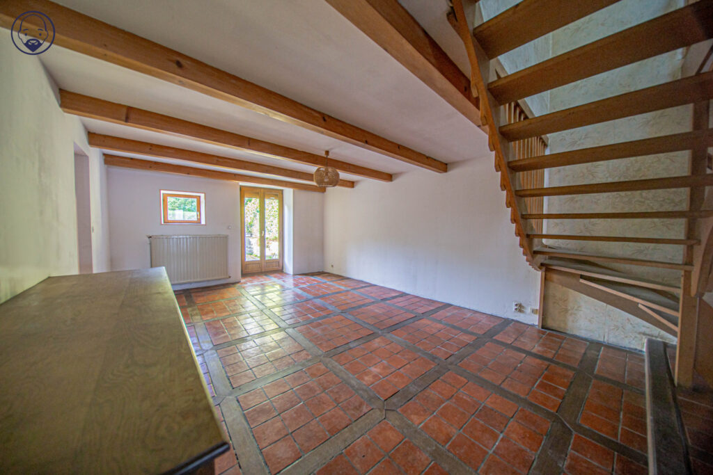 Au rez-de-chaussée, une entrée vous mène vers un vaste salon / salle à manger agrémenté d’une cheminée en pierre et de poutres apparentes. Vous trouverez également une cuisine équipée donnant accès à une agréable terrasse intimiste sur l’arrière de la maison, idéale pour profiter de beaux jours, ainsi qu’à un grand jardin. Une salle d’eau moderne, un WC, un débarras, une buanderie et une chaufferie complètent cette partie.