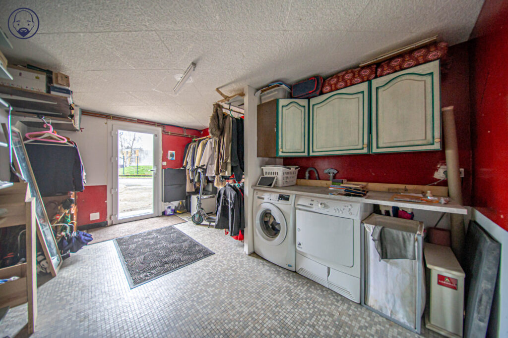 Sur le même niveau avec séparation on retrouve une entrée , une buanderie aménagée / dressing ainsi qu’un wc séparé et point d’eau , une trés grande chaufferie + stockage ainsi qu’une cave ..