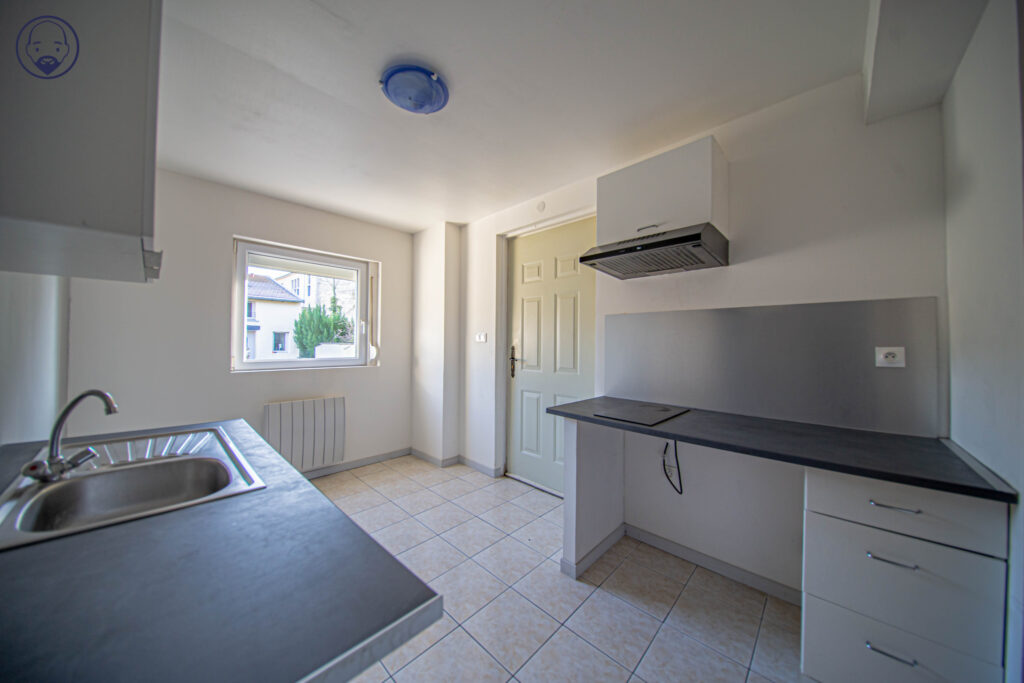 Au premier niveau, dès l’entrée, découvrez une cuisine équipée (plaque et hotte) qui donne un accès sur une agréable pièce à vivre lumineuse. Depuis la fenêtre, vous apercevez un espace extérieur invitant à la détente.