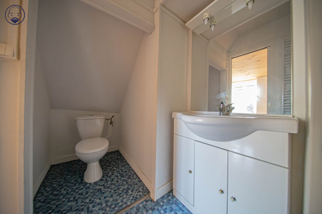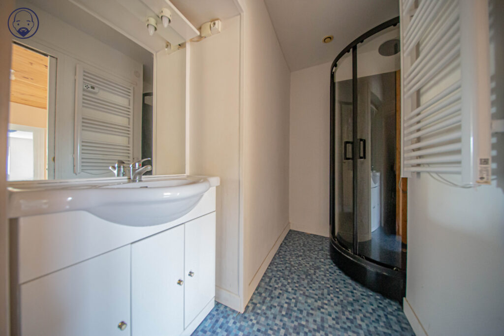 Vous y trouverez également une salle d’eau fonctionnelle comprenant cabine de douche, meuble vasque et WC.