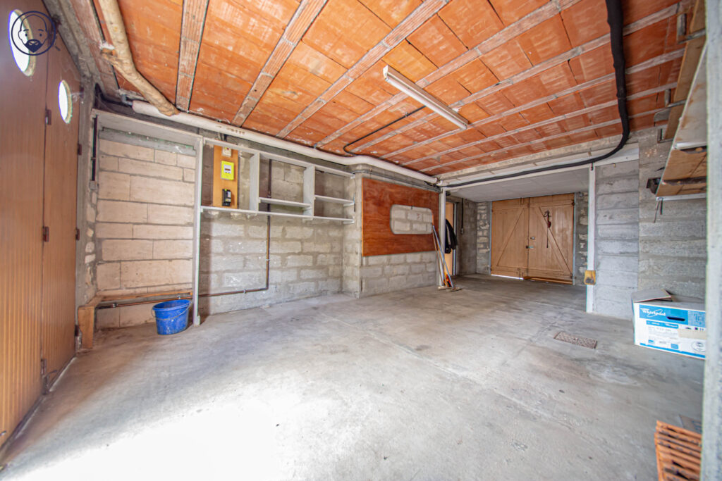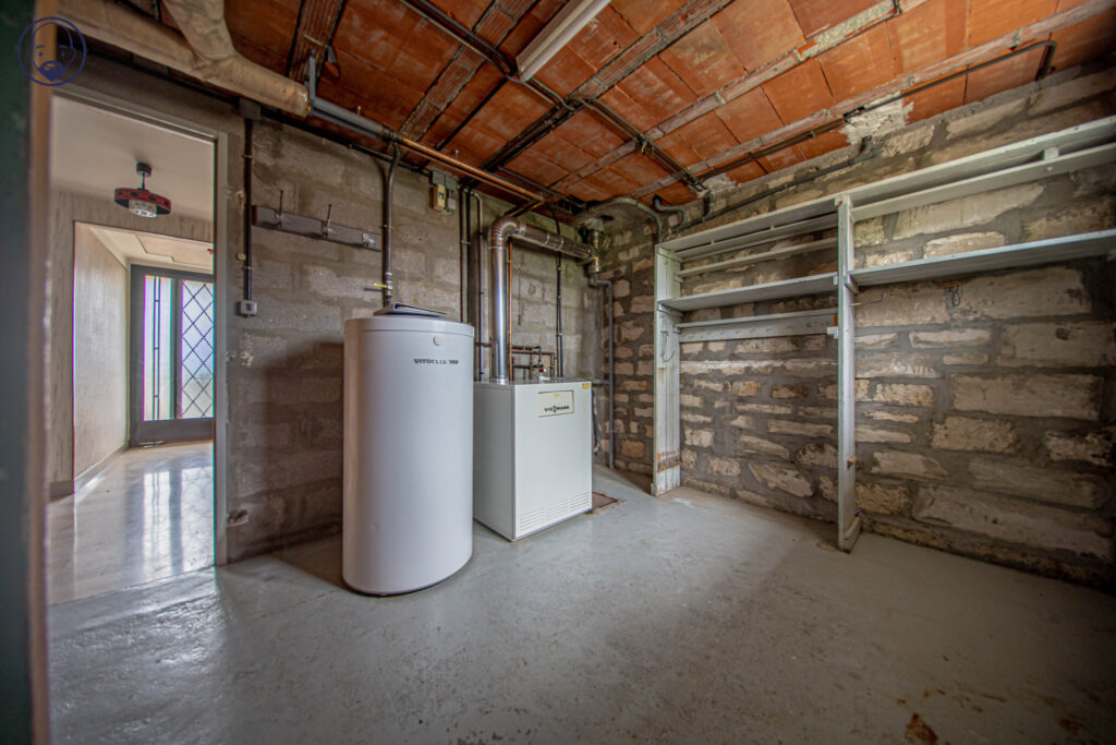 Le rez-de-chaussée se compose d’un garage pouvant accueillir un véhicule, d’une chaufferie équipée d’une chaudière au gaz de ville, d’une entrée, d’une cave et d’un cellier.