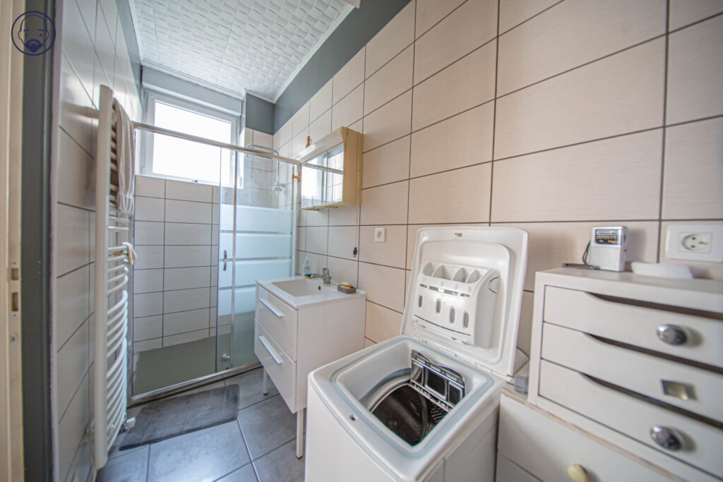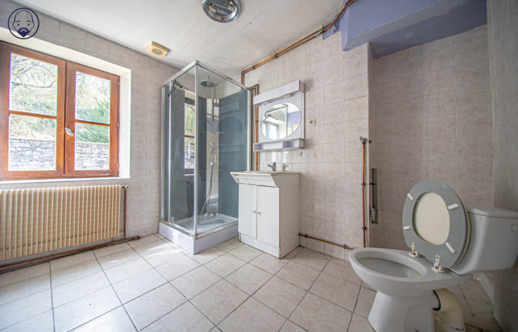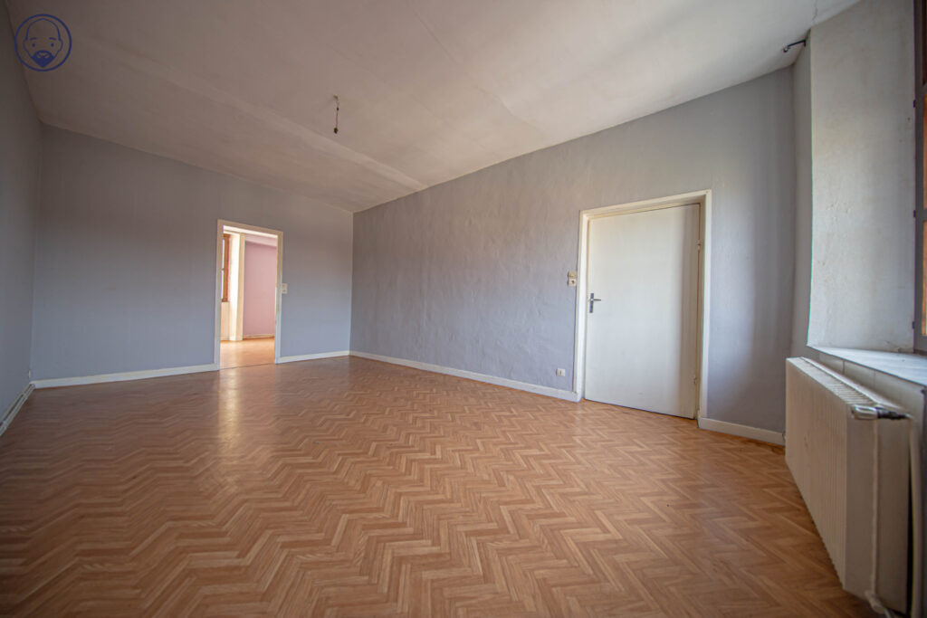 3. Un escalier mène à un appartement à rafraichir (libre d’occupation), avec un jardinet à l’arrière. Il comprend une entrée, une salle à manger, un salon, 2 chambres, une salle d’eau avec wc, un petit espace cuisine.