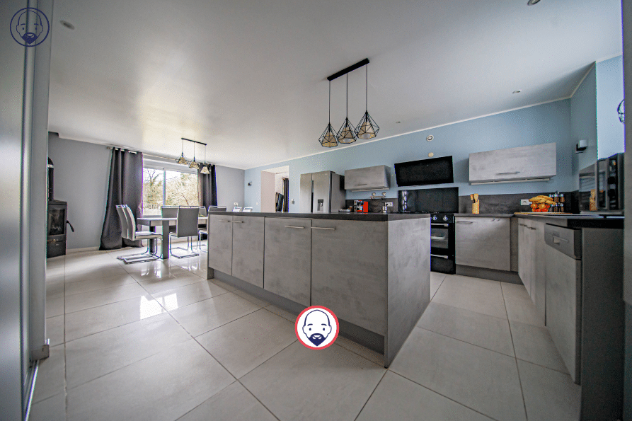 Au rez-de-chaussée, l’entrée dessert un salon, ainsi qu’une cuisine équipée semi-ouverte sur une salle à manger chaleureuse, agrémentée d’un poêle à bois et de nombreux rangements.Un bureau, une chambre avec dressing, un WC indépendant et une salle de bains équipée d’une douche à l’italienne complètent ce niveau.