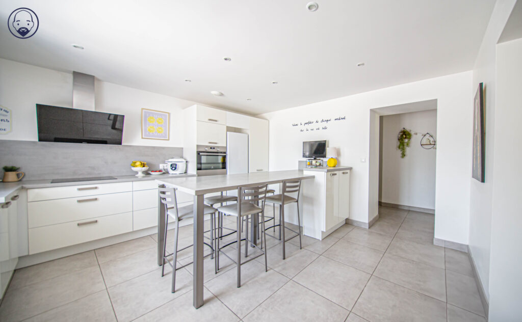 Vous y découvrirez en rez de chaussée une belle entrée qui dessert une charmante cuisine équipée, une grande pièce de vie lumineuse composée d’un salon et d’une salle à manger, équipée d’un poêle à bois de masse. Ce niveau est completé par une grande salle de bains avec douche et baignoire, un Wc, une buanderie, une chaufferie, un cellier, un garage et une belle cave voutée.