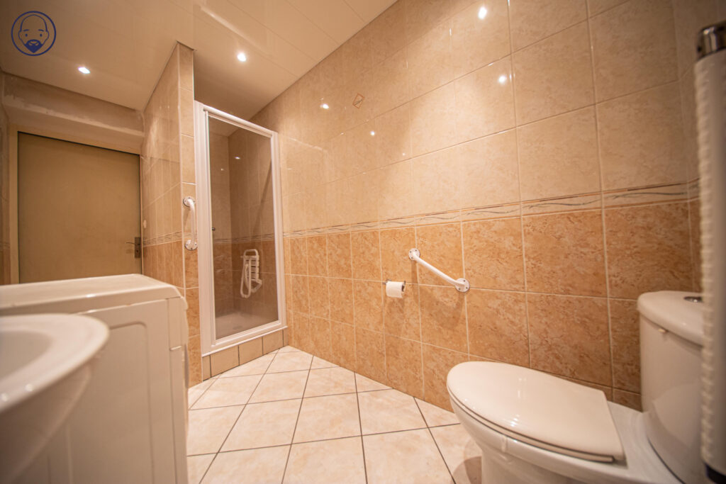 En rez-de-chaussée…Entrée sur couloir desservant une chambre, une salle d’eau avec WC, une cuisine équipée avec accès terrase ainsi que le jardin entièrement clos, accès par portail coulissant. On accède également au garage, à l’espace chaufferie et à une remise.