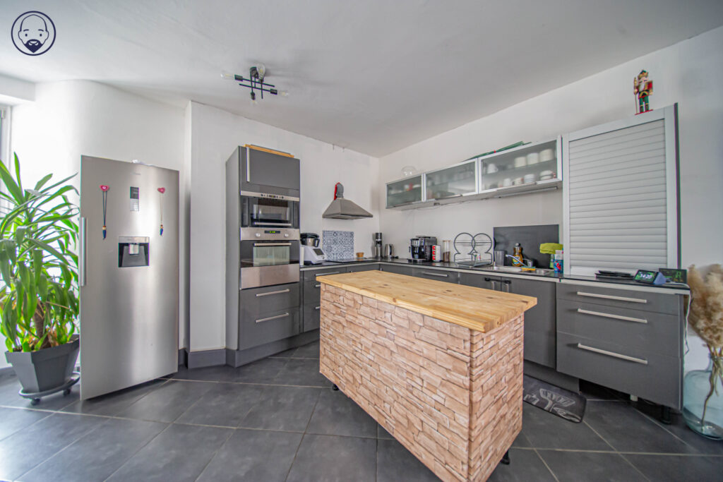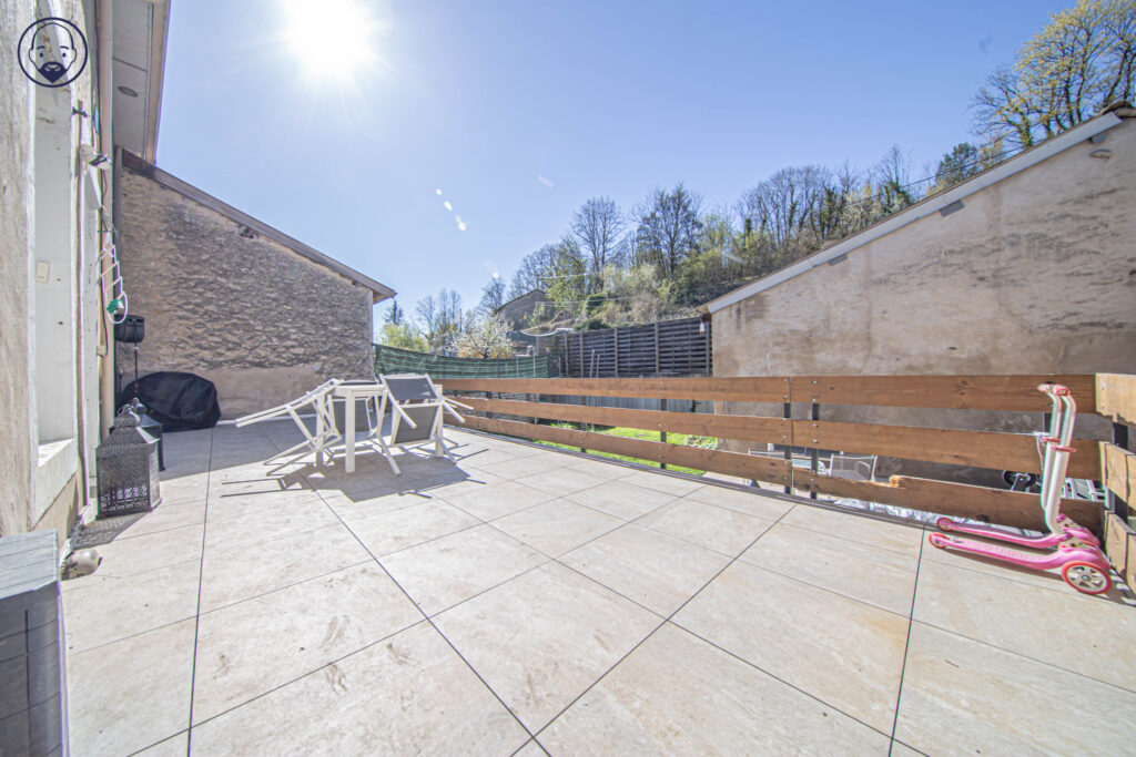 A l’étage, découvrez une cuisine équipée ouverte sur une salle à manger et un salon avec un accès terrasse, une salle de bain avec douche et un WC.