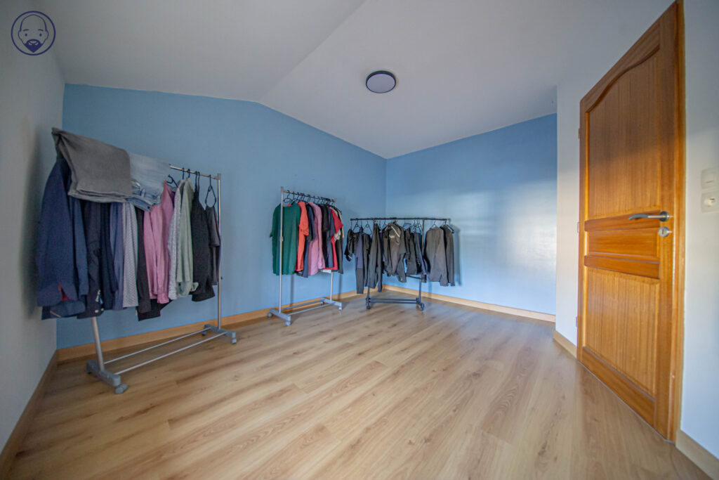 A l’étage, un palier qui dessert 3 chambres, un dressing, un coin bureau, une salle de bain avec douche, un WC et un grenier.
