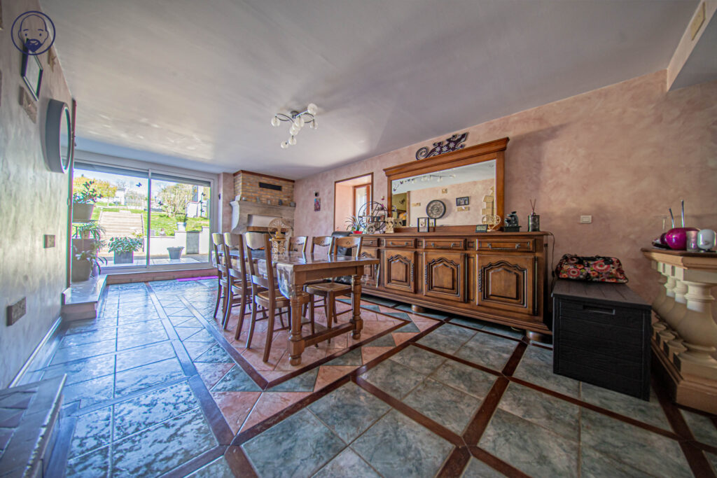 – Le rez-de-chaussée, se compose d’une entrée menant vers une cuisine équipée, un salon, offrant u accès vers l’extérieur par une baie vitrée, une salle à manger avec insert bois, une salle d’eau avec placards intégrés, un WC, un garage pour un véhicule et une chaufferie.