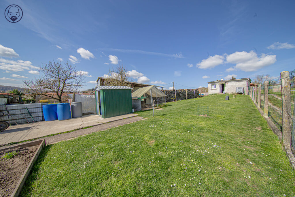La maison dispose d’une belle capacité de stockage avec un garage avec une porte motorisée électrique pour un véhicule, un appentis, ainsi qu’une terrasse. Une cave voûtée vient compléter le tout.