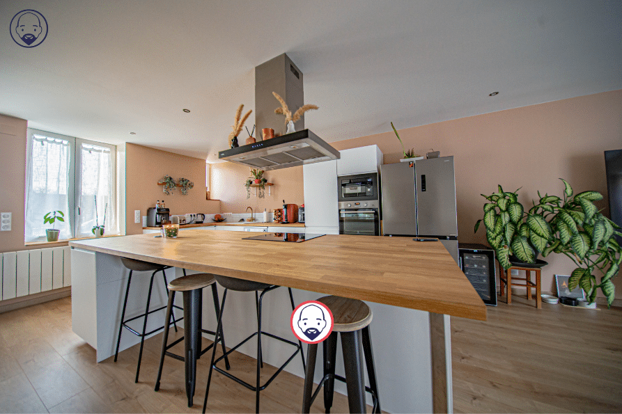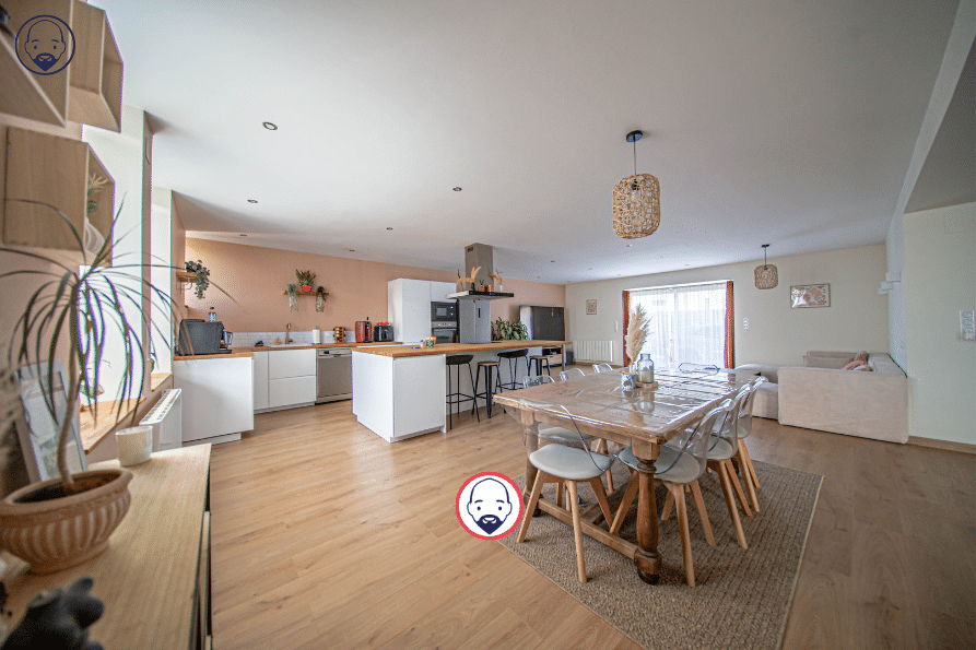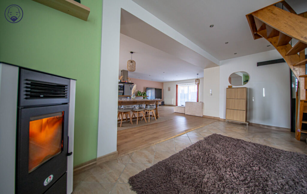 Elle vous offrira, au Rez-de-chaussée, une entrée avec poêle à granulés, une grande et lumineuse pièce de vie avec cuisine ouverte sur salon, salle à manger avec accès terrasse, une salle de douche, un wc, un espace buanderie avec accès direct à l’extérieur.