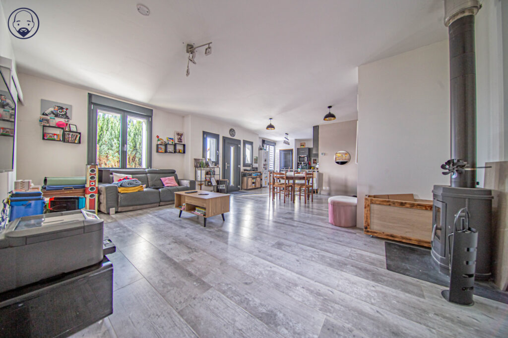 Vous aurez le plaisir de découvrir une pièce de vie lumineuse avec cuisine équipée ouverte sur salon (poêle à bois), salle à manger avec l’accès direct sur la terrasse et le jardin, 2 chambres, une salle de bain et 1 wc. Une chaufferie en sous-sol.